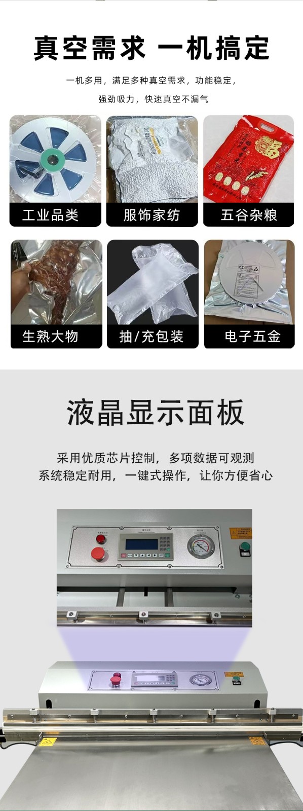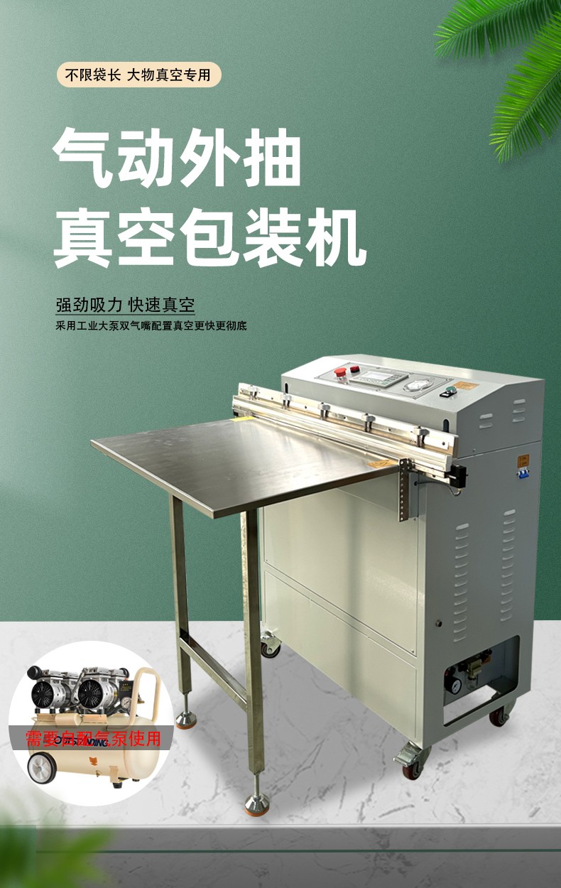 立式外抽真空包裝機的核心優勢是 “通用性強”,但若無過濾裝置,其適用范圍會大幅受限 —— 僅能包裝干燥、無雜質的產品(如紡織品、完整零件),無法處理粉塵、液體、帶碎屑的品類。