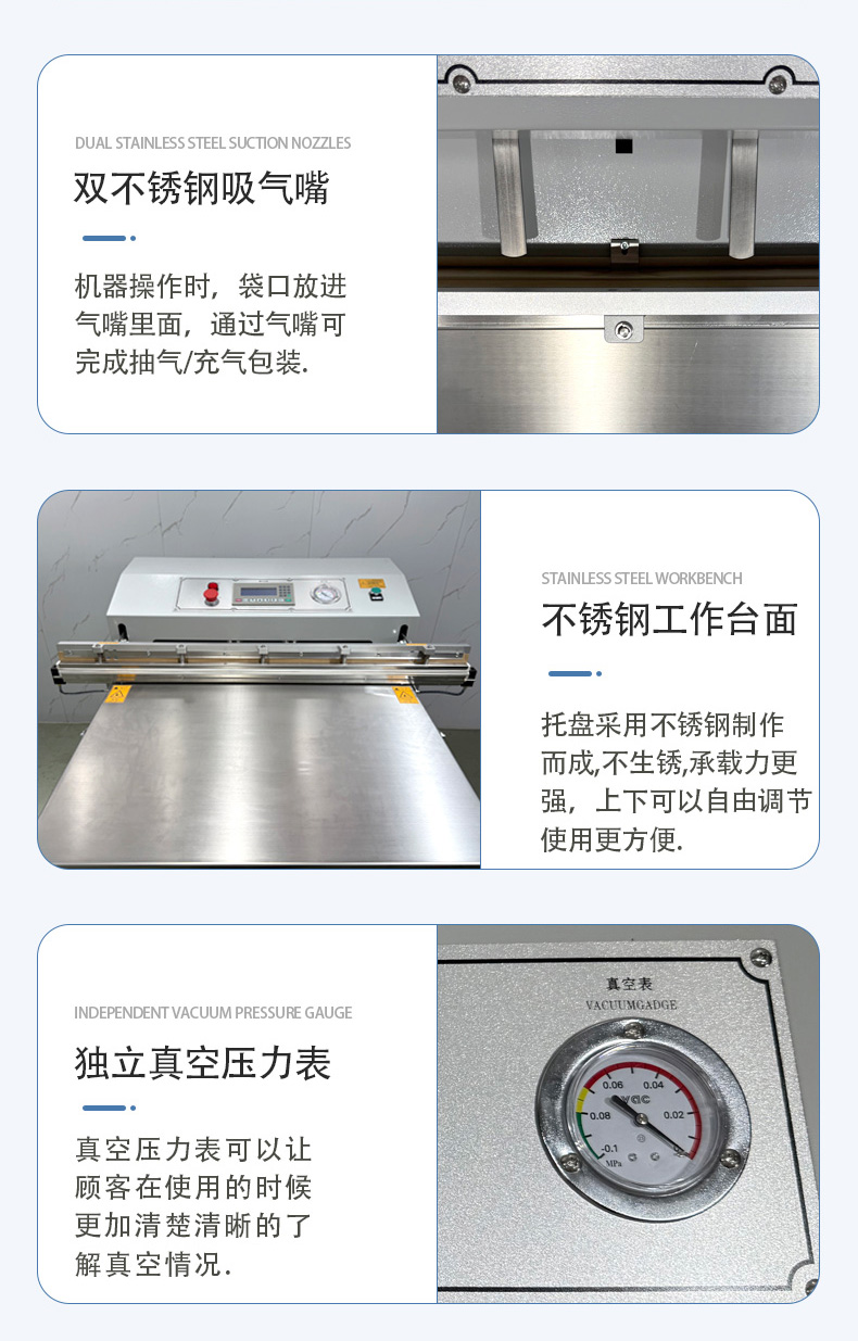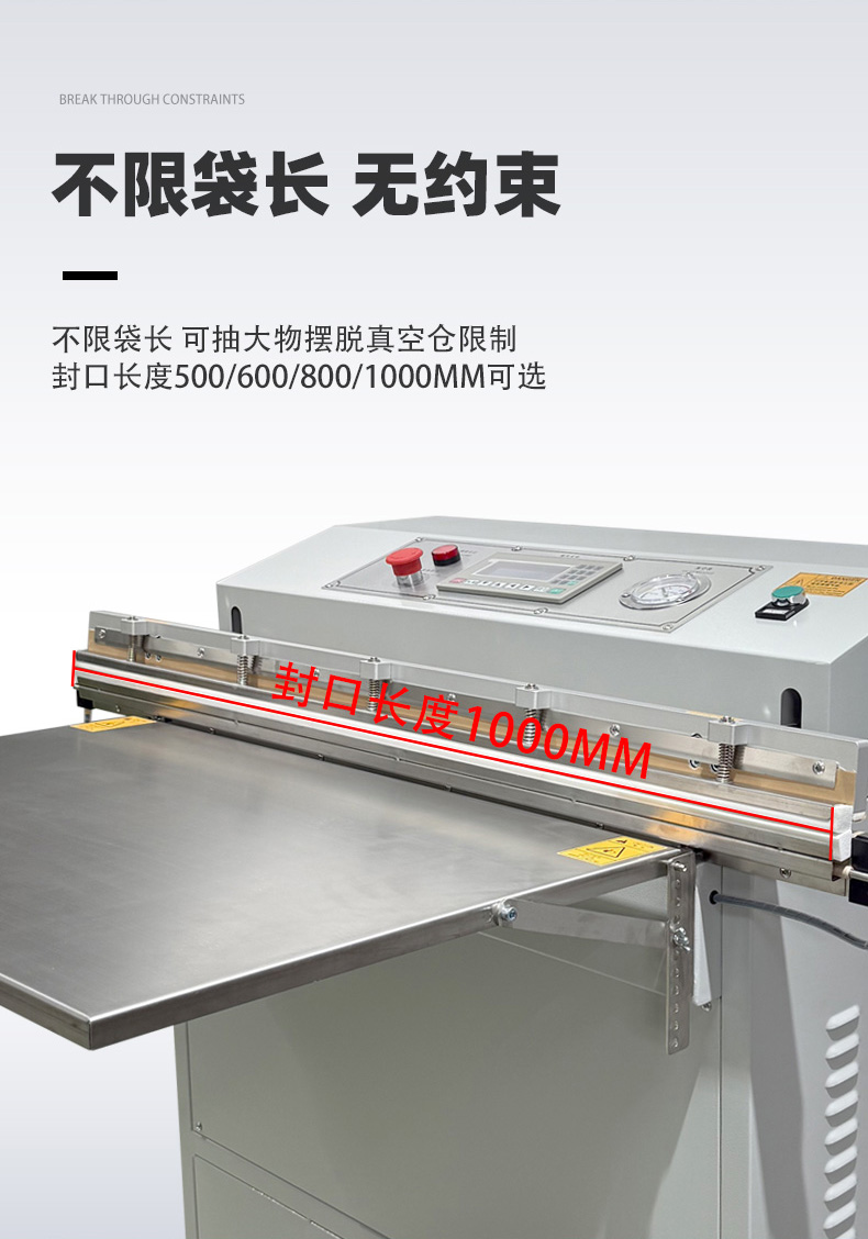 - 外抽真空包裝機的熱封條通常位于抽氣嘴下方或封口機構處,外部有金屬防護蓋(防止誤觸高溫)。