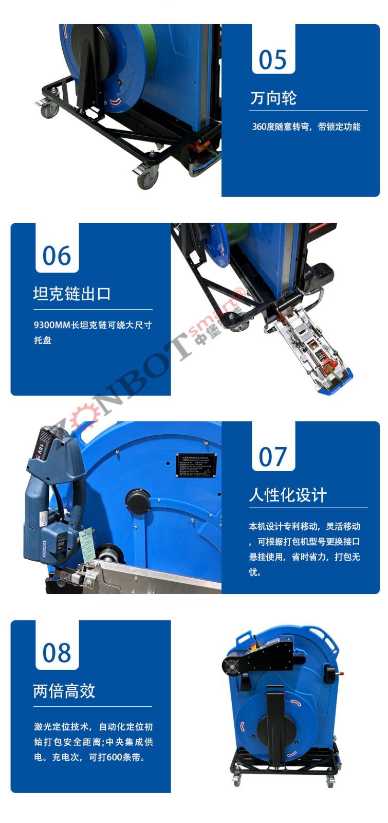 作業(yè)效率大幅提升,單人即可完成操作,相比傳統(tǒng)人工捆扎,效率提升 3-5 倍,同時減少操作人員彎腰、搬運等重復勞動,降低勞動強度。