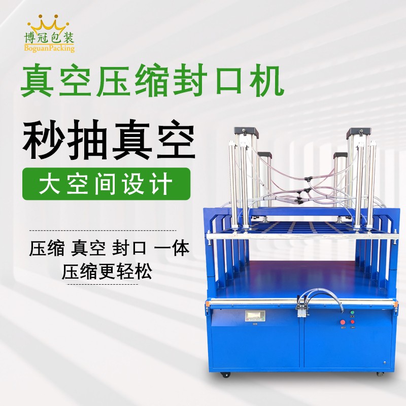 一般包括雙氣缸壓縮裝置、封口條、底板定位裝置等。雙氣缸提供強大壓力,確保壓縮效果;封口條隨上壓板升降,便于操作;底板定位裝置可將被包裝物壓成一定厚度,使包裝更勻稱。