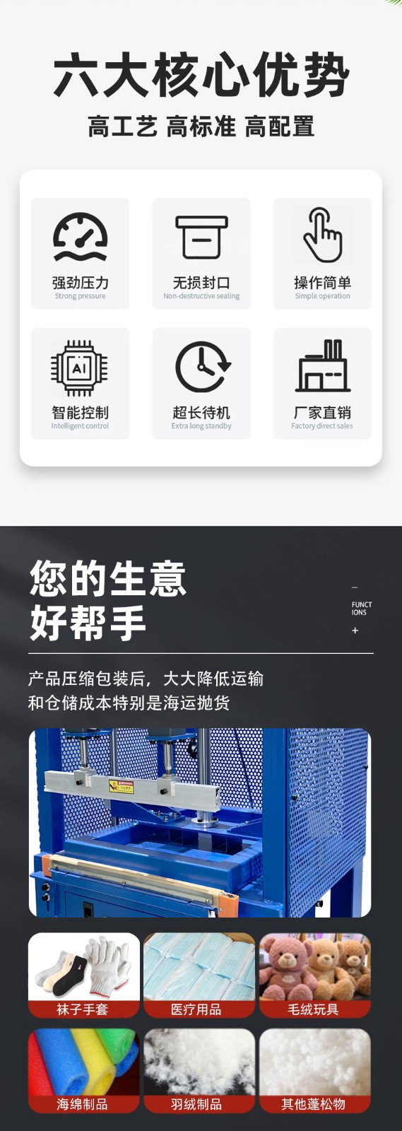 不同材質的包裝材料由于其化學結構和物理性質不同,在壓縮封口包裝機上的熱封溫度存在明顯差異,以下是一些常見包裝材料的熱封溫度范圍及特點: