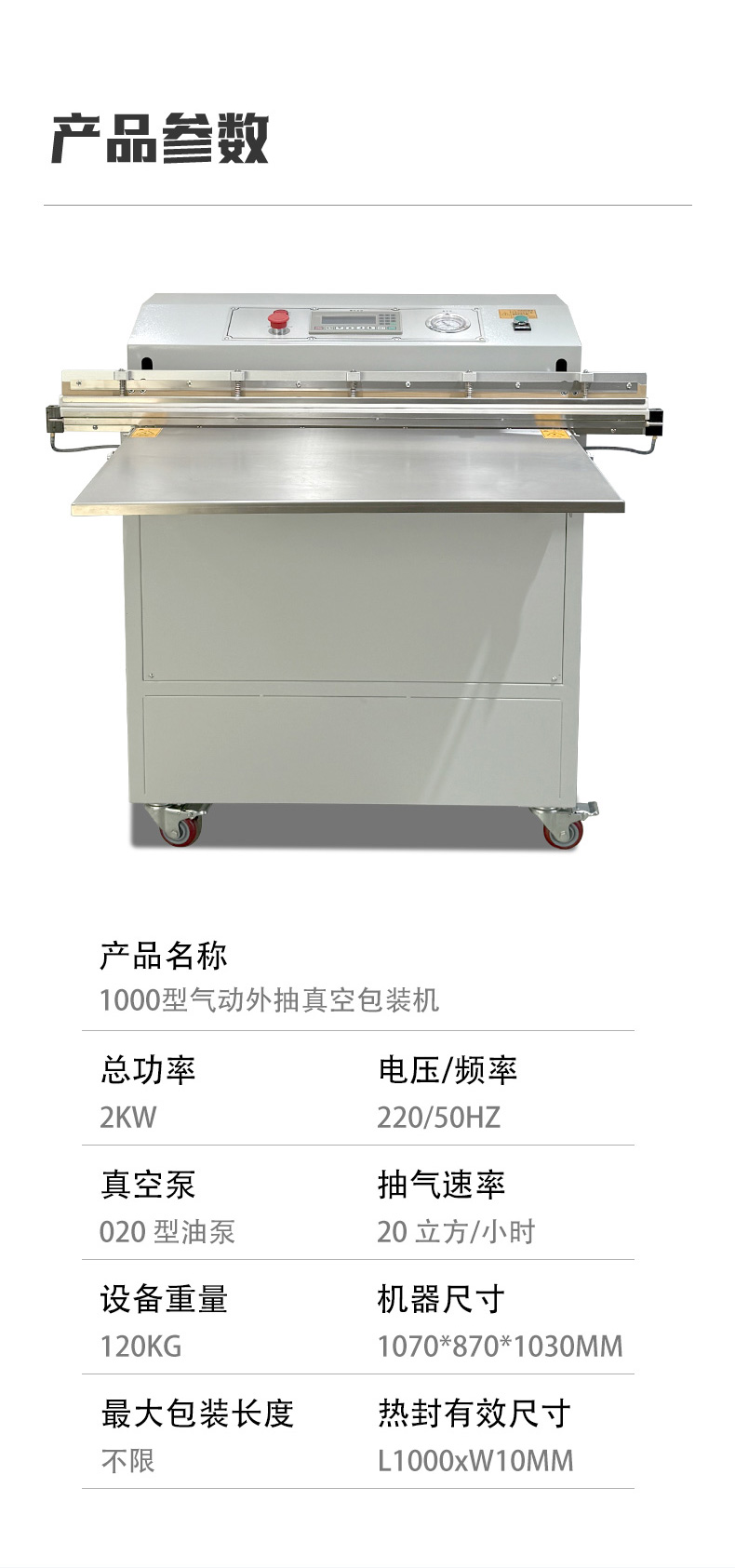 外抽真空包裝機(jī)是通過(guò)外部抽氣組件抽取包裝袋內(nèi)空氣并密封,以實(shí)現(xiàn)物品防潮、保鮮、防塵的設(shè)備,核心優(yōu)勢(shì)是能包裝超腔體尺寸、怕壓或不規(guī)則形狀的物品。
