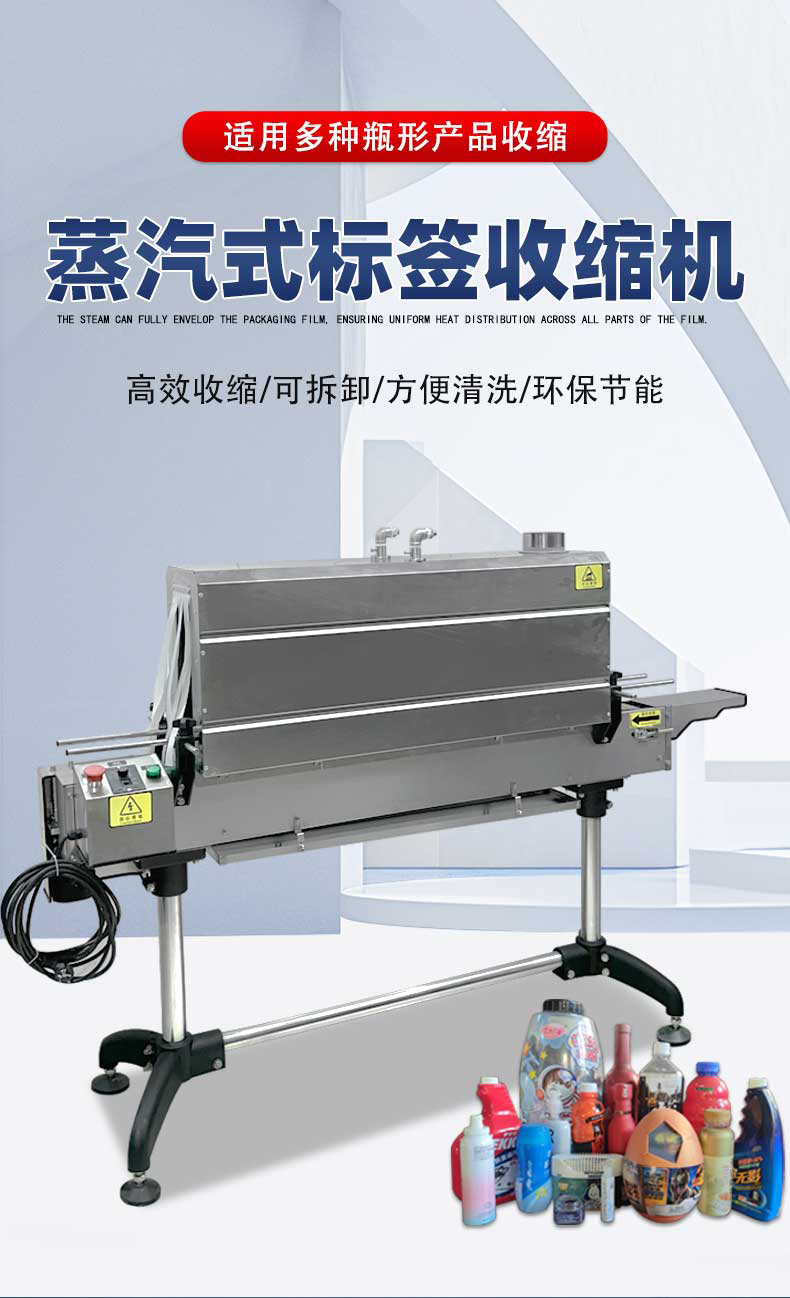 蒸汽收縮機通過將水加熱產(chǎn)生蒸汽,蒸汽在一定壓力下噴射到覆蓋在被包裝物品上的收縮膜上。收縮膜受熱后迅速收縮,緊緊包裹住物品,達(dá)到固定、保護(hù)物品以及美化包裝的目的。