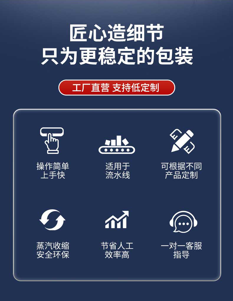 - 適用性強:可用于 PVC、POF、PP 等多種常見的熱收縮膜,能適應(yīng)盒子、瓶子等規(guī)則形狀以及其他不規(guī)則形狀產(chǎn)品的包裝。